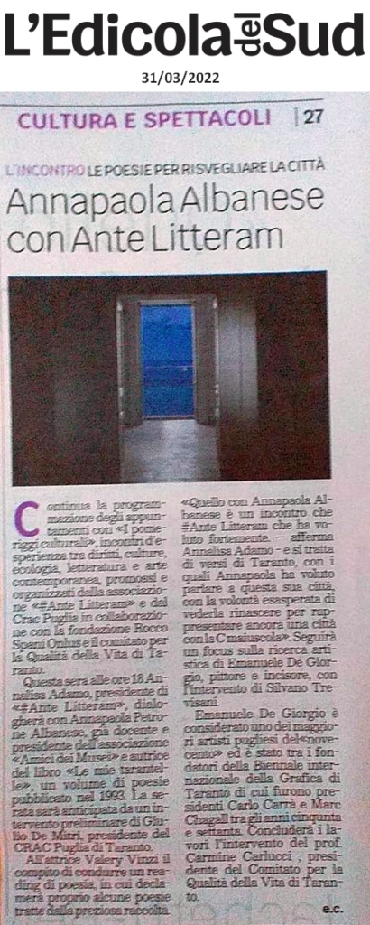Al Crac Puglia, Le mie tarantelle “con” la mia Città