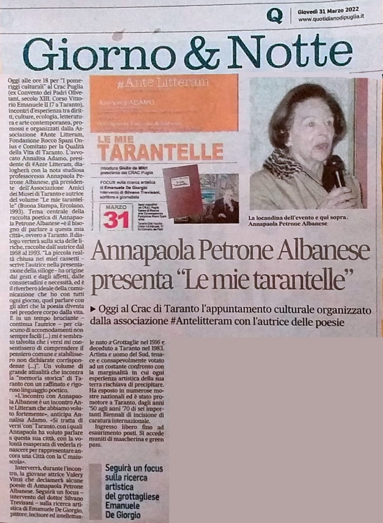 Al Crac Puglia, Le mie tarantelle “con” la mia Città