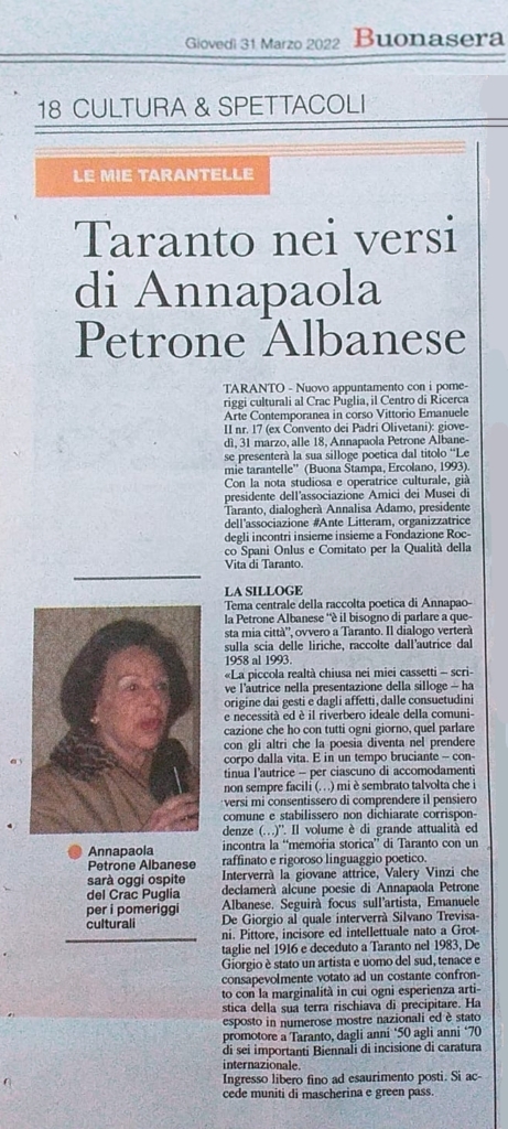 Al Crac Puglia, Le mie tarantelle “con” la mia Città